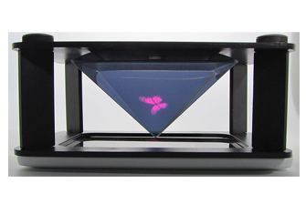 This display method requires the use of pyramid-shaped projection glass, placing the screen at the pyramid